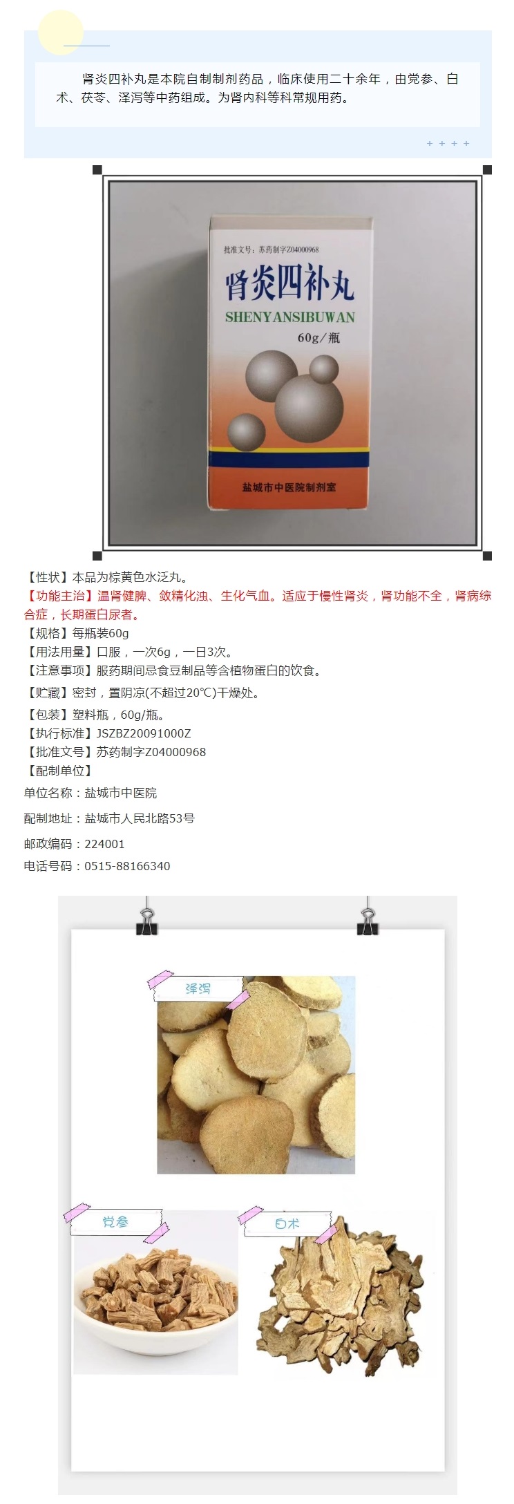 【制劑宣講堂】鹽城市中醫(yī)院特色制劑(十五)——腎炎四補(bǔ)丸